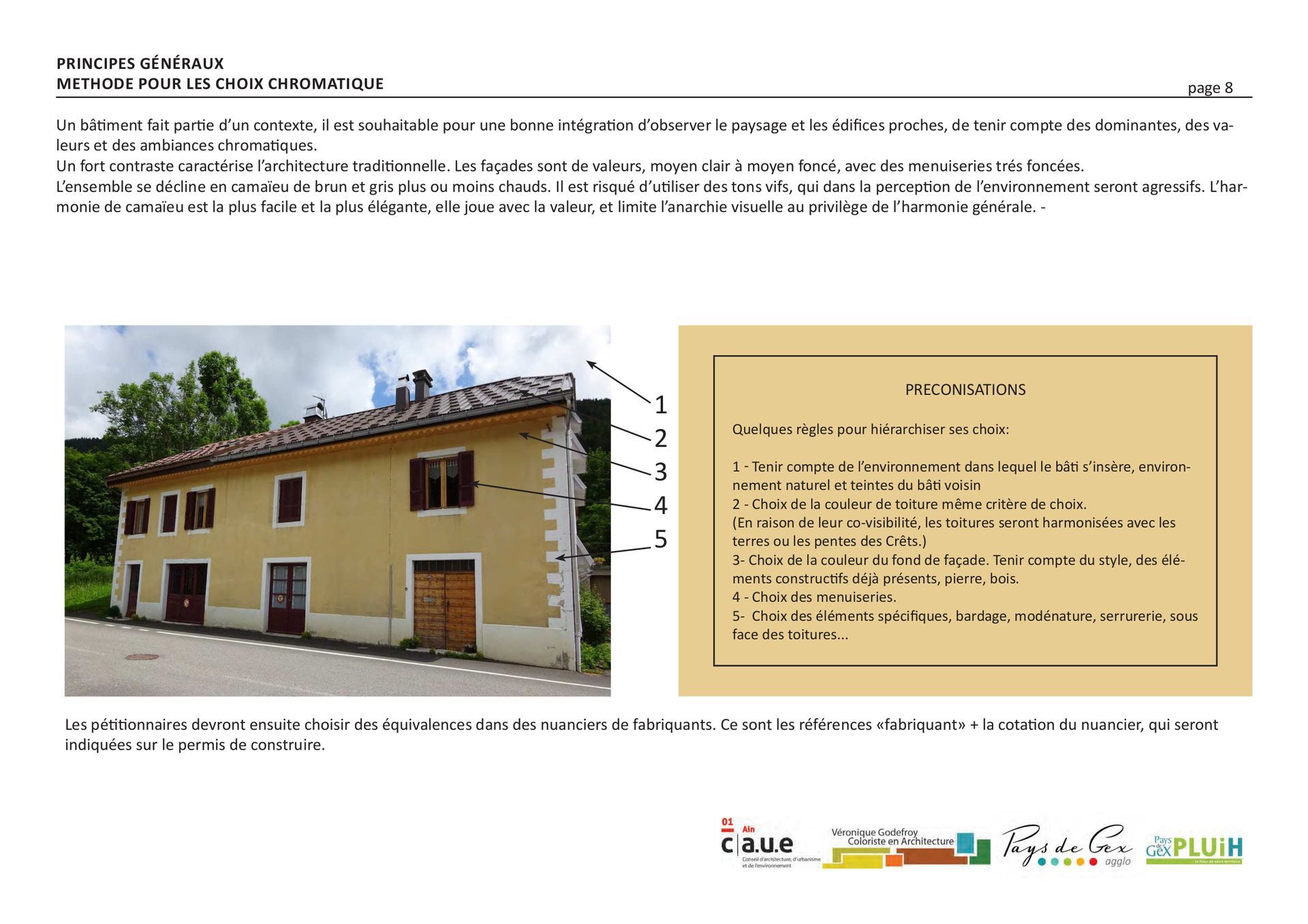Un autre outil intéressant est le guide pour les nouvelles constructions du Pays de Gex. Le guide se trouve dans le Règlement du PLUiH dui Pays de Gex (PDF) qui se télécharge depuis le site de Pays de Gex Agglo. Pour éviter de télécharger tout le règlement, ici j’ai fait un extrait de la partie qui nous intéresse.